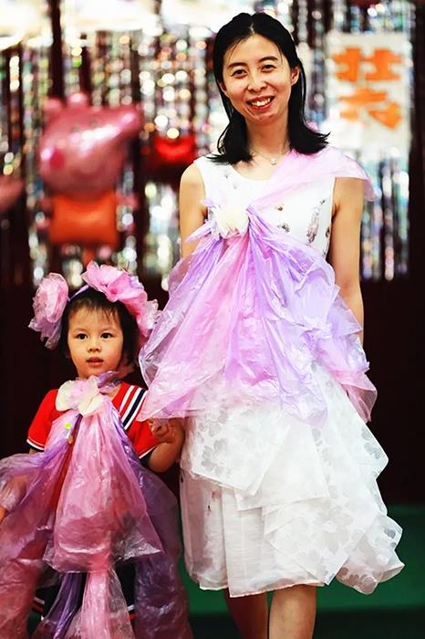 塑料袋做成的公主裙,衣裤套装,废旧纸盒、报纸“变身”马夹、外套……近日,金桥实验幼儿园组织亲子家庭开展环保时装秀活动,60多对亲子家庭“打造”了一件件别具一格的创意环保时装,并在舞台上展示成果。