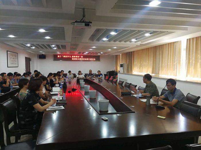 会议一开始,先由乔扬洁校长宣读了集团内小学学科组活动安排,公布了各个学科组的活动时间、召集人和分管校长。接下来徐诞校长布置了集团内小学的德育工作,就学校德育工作建设提出了新的要求和期望。主持人蔡静艳副校长重点解读了基于“深度学习·思维课堂”的教学设计编写,对新学期教师的教学设计作了统一的要求。然后阙宏伟校长作了动员讲话,希望集团内所有教师提升对“深度学习·思维课堂”主题的认识,并重视每一次集团内的研修活动,让每一次活动都能促进学生的发展、教师的发展以及教师专业素养的提升。蒋建栋校长就学科组分组活动场地的安排,拉开了各个学科组分组讨论的序幕。最后集团内小学所有校级、中层来到行政楼二楼会议室,进入了此次会议的第二个议程,基于“深度学习·思维课堂”的集团校本教研活动设计的研讨,通过讨论,明确了新学期三所小学学科组教研活动具体的活动时间、活动人员以及活动次数。