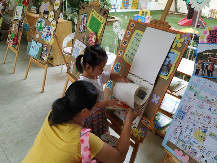 暑假大事记,专场海报秀:大班幼儿在“班级编辑部专场”中以自制图书的形式,分享了自己在暑期快乐的阅读小秘密;在“家庭编辑部专场”中,中班家长和孩子展示了暑期亲子伴读的快乐体验。暑假虽然结束了,但是在南幼的暑期自制图书展中却留下了无穷的回味;书签映南幼,迎新找变化:新学期新开始,草地上的“轮胎娃”,幼儿园的“新外衣”,教室里的新桌椅,班里的新朋友……中大班的孩子们好奇的寻找着,发现着,并把这些有趣的发现和惊喜记录在书签上,为小班新生准备着惊喜和礼物;友爱大带小,开学有好礼:大班哥哥姐姐组成小小礼仪队,迎接小班新生,为弟弟妹妹送上加油和鼓励的话,把自制的小书签送给弟弟妹妹,向弟弟妹妹介绍幼儿园好玩的地方,把悦读的体验传递给弟弟妹妹。