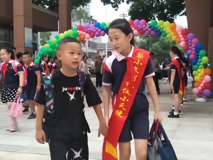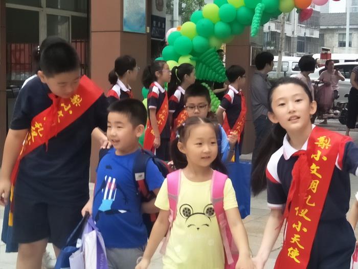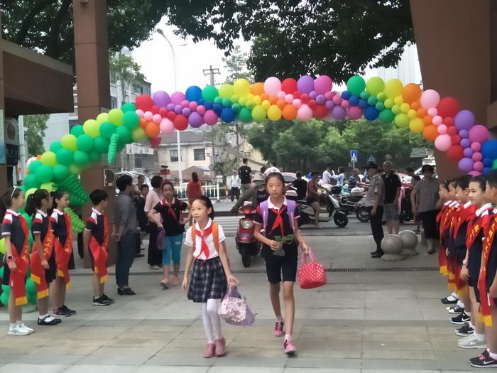 开学第一天,无锡市梨庄实验小学的孩子们兴高采烈地穿越过彩虹气球搭就的“梦想”之门,迎着老师们亲切的笑脸,重新回到了分别两个月的美丽校园。一年级的新生们一入校门就体验到了校园的温馨气氛,在六年级大哥哥、大姐姐的带领下走进了教室……七彩的校园生活拉开了新的序幕。