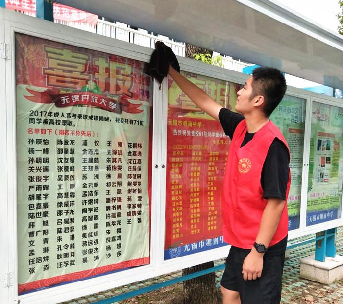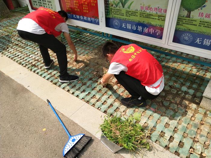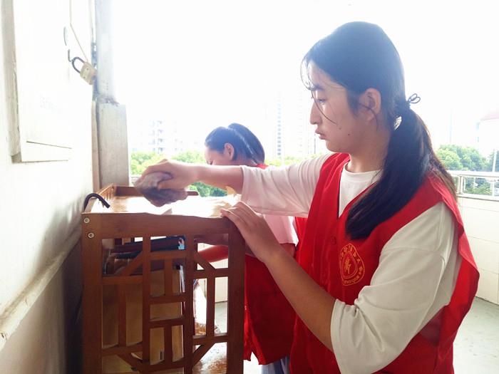 9月2日,无锡市塘南中学德育处和团委组织学校暖心志愿服务队成员们开展了“活力青年 志愿先行”的活动,对学校教室课桌椅、走廊书架、墙面瓷砖、过道扶手、包干区卫生死角等进行彻底清扫,给全校师生营造一个干净、舒适、美观的校园环境。