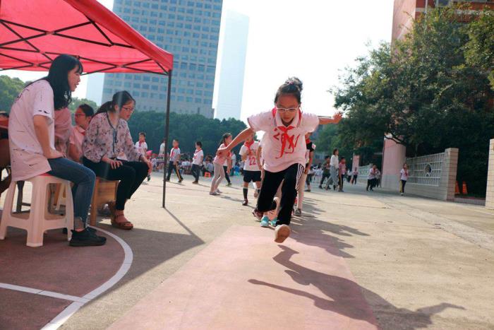 本次运动会分径赛和田赛,各班组织了啦啦队为运动员呐喊助威。现场彩旗招展、掌声雷动,运动员们不分年龄大小,在比赛场上你追我赶、体验运动带来的快乐。其中一(8)班的陈远洋同学在50米跑比赛中以8秒94的成绩打破了校运会纪录。三(6)班钱方伯同学打破了立定跳远的校纪录……在扣人心弦的30米往返接力比赛中,同学们比速度更比团队配合,各班参赛队之间奋力比拼,加油声响彻校园。