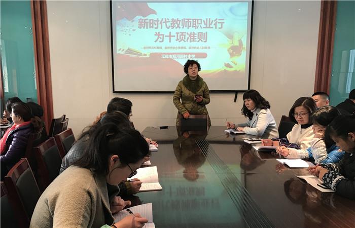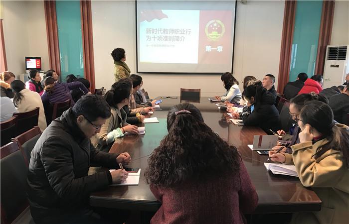 3月4日上午,南长街教育集团双河新村小学全体教师在会议室认真学习了教育部印发的《新时代中小学教师职业行为十项准则》。