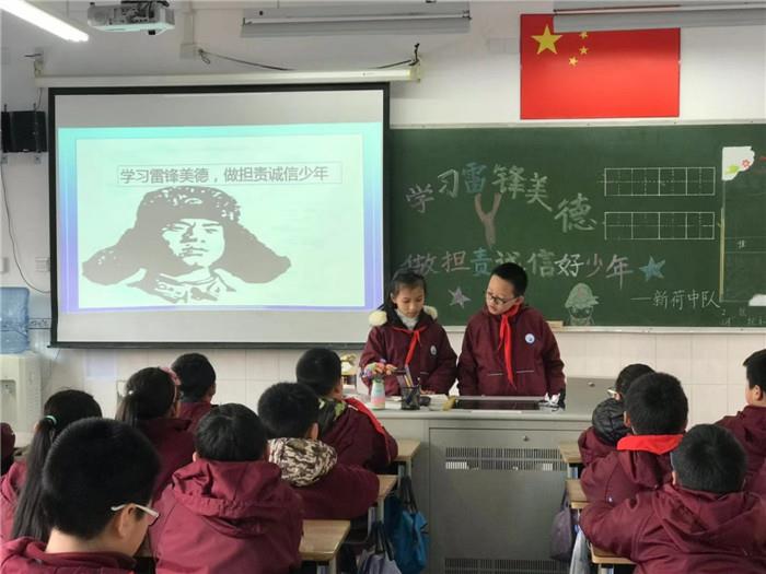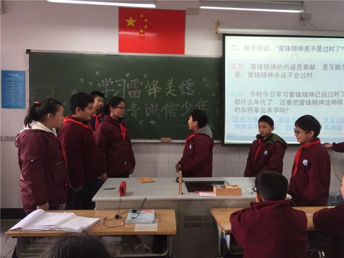 周五下午,“学习雷锋美德 做担责诚信少年”主题队会在各中队如火如荼地开展。队员们通过阅读书报、演讲、辩论等多种形式,学习和讨论了雷锋精神在新时代的作用和意义。队员们还将雷锋精神具体概括为:文明礼貌的春风精神,团结守纪的大雁精神,诚实纯真的水晶精神,主动向上的火箭精神,自强勇敢的雏鹰精神,永不服输的钉子精神和公而忘私的集体精神。通过对雷锋精神的深入讨论和学习,队员们受益匪浅。