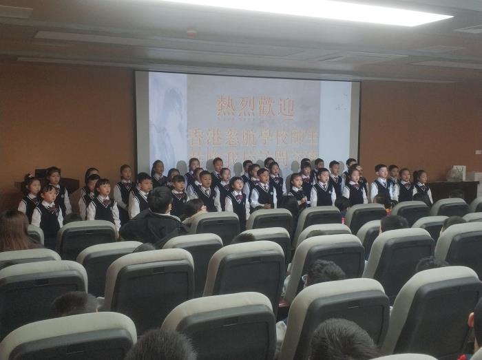 接着由四(1)班全体同学朗诵了东林校友、少将军衔、原解放军艺术学院政委——殷宝洪将军泼墨,并镌刻于校门口的《东林小学碑记》,让香港的学子们领略到了东临古运河小学精神文化的根源。一(5)班的小朋友们则是唱起了《共同长大》,在悦耳欢快的歌声中传达了同一片蓝天下,心连心共成长的美好愿望。