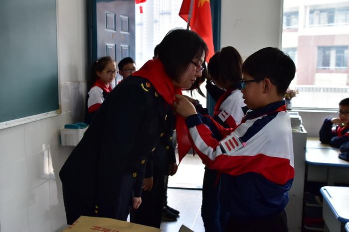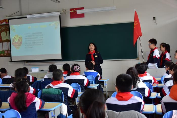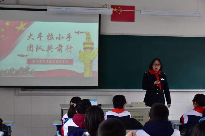 首先来自区市场监管局的党团员大姐姐宣婧蓉带领队员们重温了少先队知识。通过亲切的讲解、热烈的现场互动,少先队员们不禁为自己是一名少先队员而感到无比光荣。随后,大姐姐还给队员们讲述了共青团的相关知识,号召队员们积极行动起来,为成为一名光荣的共青团员而努力。