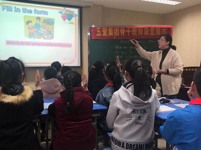 为促进教师专业成长,推进“深度学习?思维课堂”实践,充分发挥集团化办学优势,加强校际合力,形成研究共同体,“五爱教育集团骨干教师课堂展示”活动的英语专场展示于3月28日下午在刘潭实验小学如期展开。五爱集团分管教育领导及全体英语教师参加了此次活动。来自成员校的张自信、高菊英、陈敏三位英语学科骨干教师进行了英语语篇教学的课堂展示。他们的课堂教学围绕教材的核心问题展开,让学生读懂问题情境,读懂教材中例题,读懂教材的对话,让教材中的信息转化为学生易于接受的信息,引导学生进行探究。张自信老师采用灵活多变的教学方法,让学生在玩中学,学中用,使学生活起来,课堂活起来,不断挖掘学生的思维,真正让学生做到深度学习。高菊英老师根据教材内容设计可行性情景,让学生置身于语言环境中进行语言实践,将枯燥的内容寓于有趣的情景教学之中,?把课堂变成生动活泼的英语交际场所。陈敏老师将“游戏”融入课堂,利用儿童活泼好动的天性,将教材变“乏味”为“有趣”,变“被动接受”为“主动学习”,变“沉默”为“活跃”……