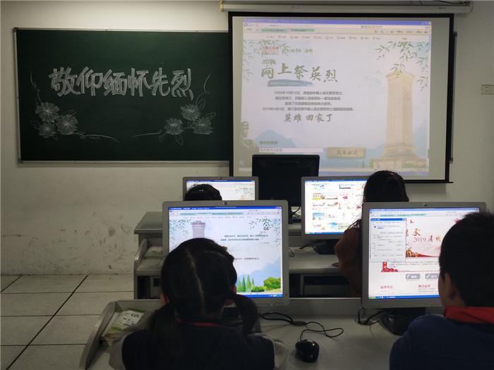 气清景明,崇尚英雄,缅怀先烈。4月8日,在信息技术学科沈老师的带领下,崇宁路实验小学的队员们参加了网上祭英烈活动。队员们通过登录网站学习,不仅知晓了“斗鸡、蹴鞠”等清明习俗,还认真阅读胡文杰、杨瑞年等革命先烈的英雄事迹并进行网上献花和留言寄语。