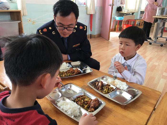 首先,小朋友和家长认真聆听了市场监督管理局的工作人员为大家准备的食品安全专题讲座。工作人员结合实例,深入浅出地介绍了食品安全的基本常识、注意事项,对家长现场提出的食品安全问题进行了解答。随后,在老师和市场监督管理局工作人员的带领下,小朋友和家长前往南长街,分组寻找我们身边的食品安全小标志,并把它拍下来制作成食品安全手册。最后,市场监督管理局的叔叔当了一次特邀“陪餐员”,肯定了南幼午餐营养均衡,安全可口。
