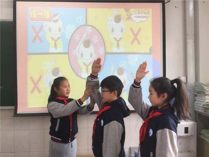 活动中,大、中队辅导员对少先队员进行了少先队基础知识主题宣讲。内容主要围绕少先队基本知识展开,讲解队名的意义、示范敬队礼、练习唱队歌和呼号,并重温少先队发展史,深入了解少先队的作风。在普及队标志标识相关知识中,对“队员标志——红领巾”、“干部标志——大、中长和委员以及小队长标志”、“组织标志——队旗、队徽”三方面进行详细介绍。读一读、练一练、唱一唱等形式,不仅让队员们重温了队知识和队礼仪,更增强了他们对少先队组织的光荣感和归属感。