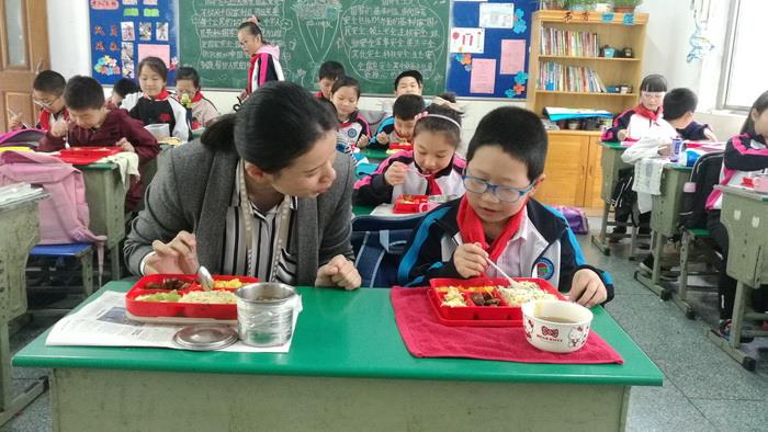 孩子在校用餐吃什么、能否吃饱、营养够不够、味道好不好,牵动无数家长的心。让孩子们吃上一顿健康安全的饭菜,是社会的期望,也是学校的担当。 亭子桥小学从4月1日起实行学校领导陪餐制度,近一个月来,校长、值班行政和老师们每天与学生共同用餐,校长随机选择一个班级陪餐。