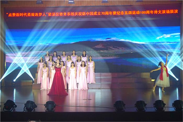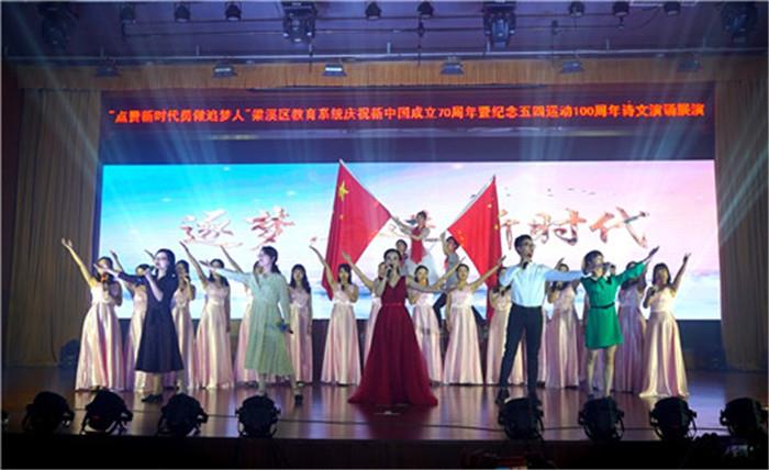 让梦想照进现实,让未来充满期望,让我们一起逐梦,奋进新时代······ 4月25日下午,南湖小学礼堂里诗声朗朗,由梁溪区委教育工委、梁溪区教育局主办,梁溪区教育工会和梁溪区教育团工委承办的“点赞新时代,勇做追梦人”庆祝新中国成立70周年暨纪念五四运动100周年诗文演诵展演活动在这里隆重举行,无锡市侨谊幼儿园由吴昀园长亲自撰写并编排的作品《逐梦,奋进新时代》参加了此次展演。