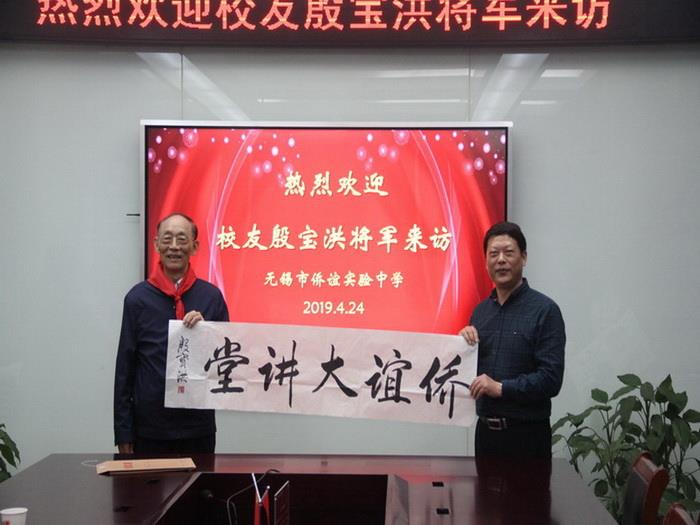 相信,在侨谊这座大讲堂里,在像殷宝洪将军这样杰出校友的引领、关怀下,全体师生必将努力修身养性,不断谱写新的辉煌篇章。