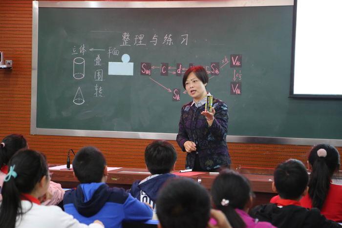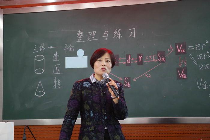 第二节课由芦庄二小的钱丽萍副校长执教六年级下册《圆柱和圆锥的整理和练习》复习课。复习课既不同于新授课,也不同于练习课。它是在学生已学知识基础上的再提高、再升华的过程。钱校长引导学生在复习中把旧知识转化,并产生新鲜感,从而形成“网络”,提高学生综合运用知识的能力。整节课,教师挖的“深”,学生学的“进”,真正体现了思维课堂的理念。