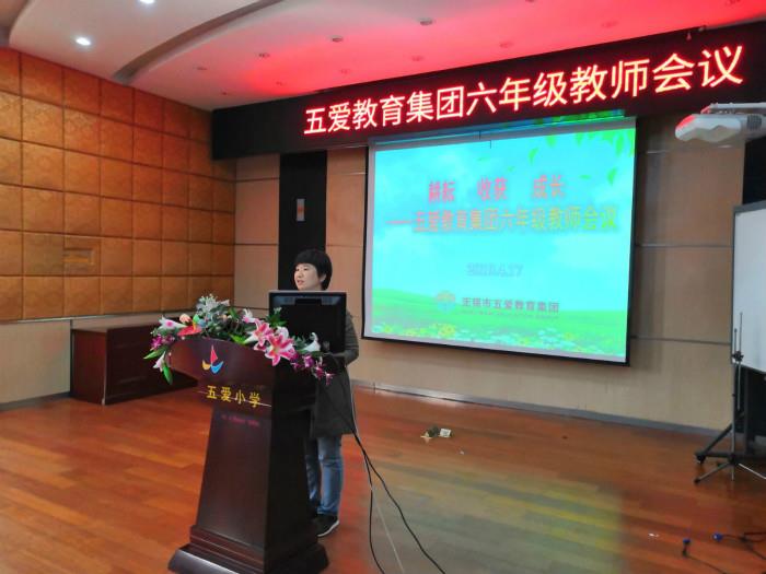活动最后,五爱教育集团总校长许敏峰热情洋溢且温暖人心的话语,再次在报告厅回荡。她亲切地勉励所有的老师,小学毕业是孩子面临人生成长的第一个十字路口,老师们要站在更高的高度提高对总复习的认识,为孩子们奠基好未来的学习之路打下更坚实的基础,为形成孩子各科核心素养能力筑起压不垮的决堤。“不让一个孩子掉队”,全体毕业班的老师们更要挖掘团队的智慧,用爱心、恒心和耐心,让每个孩子在原来的基础上争取“蜕茧成蝶”,华丽绽放每一个怒放的生命!