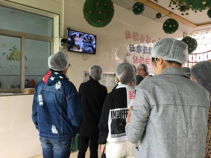 会议结束后,家委代表们在后勤负责老师以及保健医生的陪同下进行了为期半天的参观体验。家长们戴上一次性帽子来到了食堂,进行实地考察,了解食堂内的每日配餐、食品操作、器具消毒、食品留样。通过观看监控视频,家长们现场感受了食堂工作人员严谨、负责且忙碌的工作状态,目睹了幼儿园A级食堂的风采,深入地了解了食堂精细化管理的操作流程和办法。