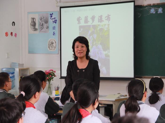 山北中学的张蓓娜老师执教宗璞的《紫藤萝瀑布》。张老师的课柔和、自然,以表达方式为脉络,不着痕迹地带领学生以记叙理行踪、以描写练批注、以议论抒情把握主旨。整堂课既关注细节又磅礴大气,显示出深厚的教学功底。