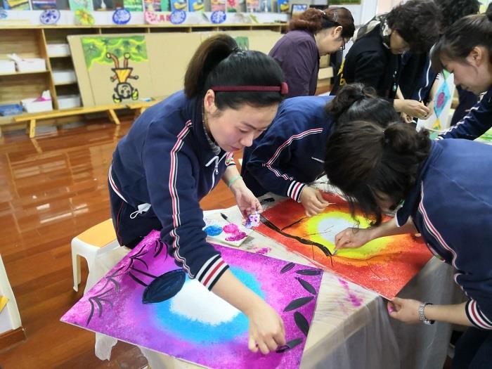 为了更好的提高教师的美术教学理论素养和实践能力,造就一支基础扎实,业务精良的教师队伍,侨谊苗苗园于4月29日中午组织开展了教师美术教学和创意美术实操活动。