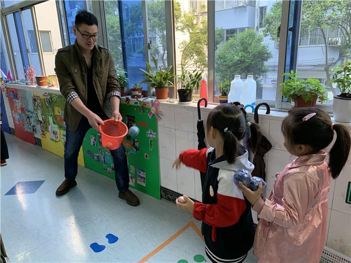 “看看是谁来啦?”在一双双期待的大眼睛注视下,“亲密的大朋友们”如期而至。“来来来,你快来!”这边,几个小朋友赶忙拉着自己的爸爸妈妈在走廊里蹲下来,对着墙头“点点说说”,解说着自己平时在幼儿园的活动、完成的作品。“快接住!我刚刚教过你啦!”那边,几个小朋友当起了“小老师”,和大朋友们玩起了在幼儿园玩过的新游戏。