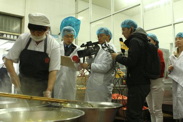 本次检查由梁溪区市场监督管理局南禅寺分局张天晖局长,东林小学宣奕鹏副校长,膳委会家长代表等一行人组成。检查小组深入厨房、库房、餐厅。对厨房的进菜口、粗加工间、精加工间、蒸饭间、消毒储藏区、熟食分餐间、出菜口等情况进行了全面、细致地检查;对工作人员的健康证仔细核对;认真指导了厨房间的消毒、存储、食材加工等工作。在库房检查人员认真查看了每一样副食品的生产日期、厂家信息等,以及留样冰箱的使用情况。在教师餐厅,检查人员和膳食委员会家长代表仔细查看核对了食堂的各项账目。
