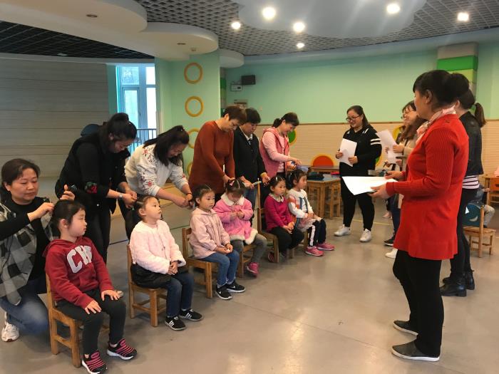 为进一步落实保教并重的教育原则,提高保育员的专业素养,挖掘保育员内在潜力,激发她们参与活动的积极性,同时结合月考核要求,5月5号下午,无锡市刘潭实验幼儿园组织保育员进行了主题为“漂亮辫子大比拼”的岗位练兵活动。