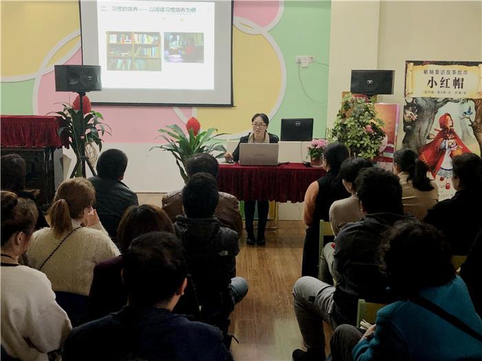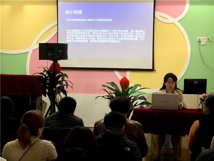 无锡市通江实验小学徐建华老师就大班家长们关心的“幼小衔接到底衔接什么?”、“作为家长应该如何帮助孩子作好入学准备”等问题,与幼儿园大班家长朋友们进行交流,徐老师通过PPT和举例说明详细地分析了孩子在小学一日生活中的各种表现,引导家长从心理、生理及学习上帮助孩子走好人生第一步。台下家长听得聚精会神,不时发出阵阵热烈的掌声。