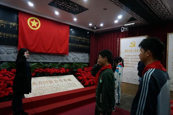 在第一支部二楼,大家参观了无锡杰出共产党人事迹展板,金星中学团委书记杨雯婕老师一“以青春之我成就青春中国——入团第一课”为题拉开了入团第一课的学习。她希望全体新团员通过加深对“五四”运动历史意义和时代价值的认识,坚定跟党走的信念,勇做走在时代前列的奋进者、开拓者、奉献者。