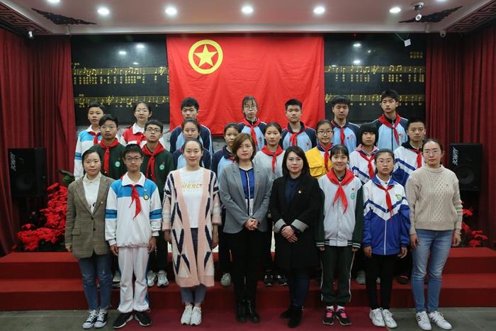 随后,全体师生来到第一支部举行入团仪式。在嘹亮的团歌声中,面对鲜艳的团旗,大家齐声唱响《光荣啊,中国共青团》。带着激动的心情,各校团委老师们为新团员们佩戴上团徽。梁溪教育团工委黄斐书记带领全体新团员举行庄严的入团宣誓。洪亮的青春誓言表达了同学们对共青团组织的无限向往和豪迈激情,展示了作为中国共产主义青年团一员的光荣感和责任感。随后,侨谊中学徐尧同学作为新团员代表发言,他号召全体新团员发扬共青团优良传统,保持昂扬的精神状态,时刻体现团员先进性,以实际行动践行自己的入团誓言。