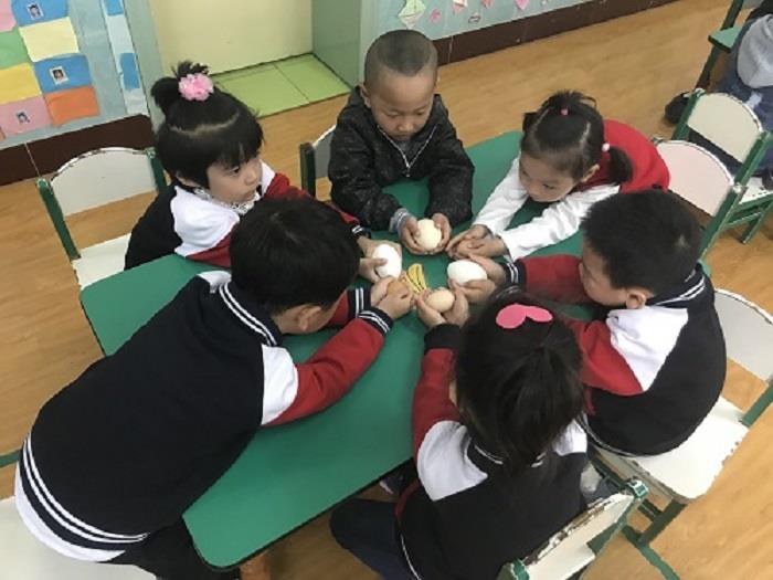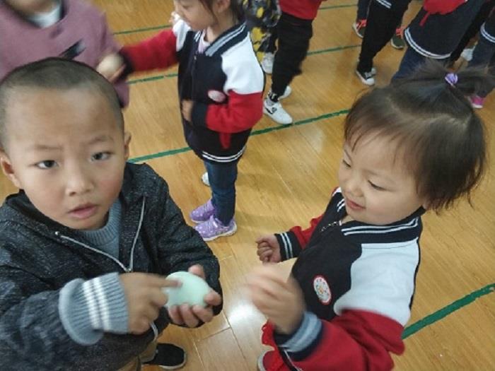 一大早,孩子们都拿着煮熟的鸡蛋、鸭蛋和鹅蛋来到了幼儿园。在老师介绍了立夏节的由来与民俗风情以后,一场围绕“蛋”展开的精彩活动开始了。首先,孩子们介绍了自己带来的蛋宝宝,拿着自己的蛋进行了摸、闻、听、赏,平时很常见的蛋现在成了孩子们手中的宝贝,爱不释手!紧接着,激动人心的“斗蛋比赛”开始了,孩子们每人手里紧紧攥着自己最得意的蛋,找个对手就斗起来。此起彼伏的“砰砰”声过后,蛋完好无损的继续再战,直至最后决出 “蛋王”。