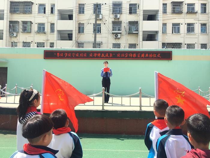 为深入贯彻落实党的十九大精神,进一步传播法律知识,加强学生法治教育,5月6日上午,亭子桥中心小学举行了“尊法学法守法用法 ,法律伴我成长”法治宣传教育周启动仪式。
