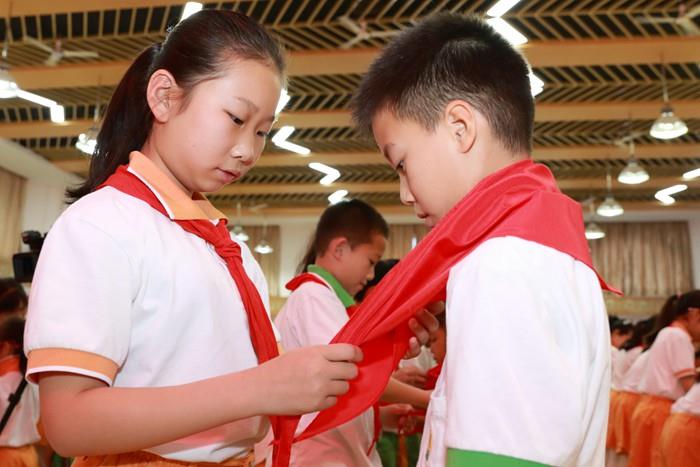 5月30日上午,无锡市扬名中心小学“新时代,我们是光荣的少先队员”一年级新队员入队仪式在学校艺体馆举行。448名一年级学生在“六一”前夕戴上红领巾,在队旗下庄严宣誓,正式加入中国少年先锋队。