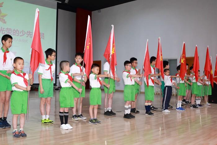 随后,严青校长为新成立的10个中队授中队队旗,陈蓉欣副校长为辅导员们颁发了聘书,大队辅导员张婷老师送上了祝福与期望,鼓励新队员们把自己五彩斑斓的小梦想汇入民族复兴的大梦想,与老队员们一起携手拥抱新时代!