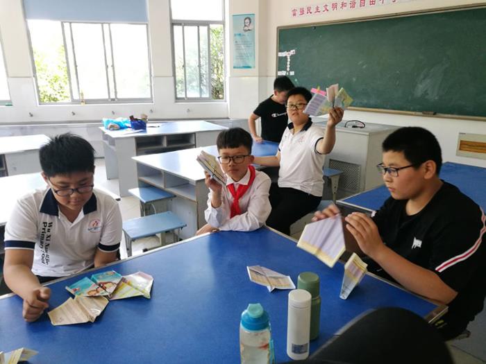 参加航模比赛的同学经过封闭制作、试飞调整、场外竞时,捧出了一份优秀的成绩单。其中,张轩铭、章立成、周宇鑫、戴君浩、陆鸿涛、马俊骅、马茗哲等7名同学分别获得折纸飞机一等奖,桑宇、金颖萱等2名同学分别获得轻木弹射一等奖;另有5名同学获得二等奖,7名同学获得三等奖。令人惊喜的是:周宇鑫和张轩铭两位同学,分别以10.9秒、16.4秒的好成绩,刷新了无锡市折纸飞机个人单轮成绩、个人总成绩的历史纪录;