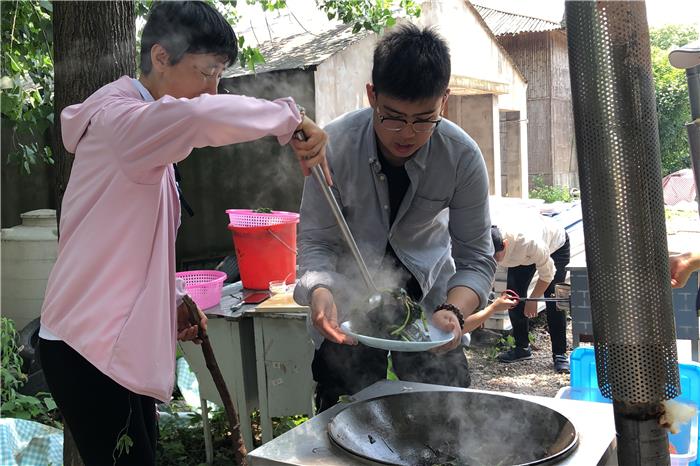 活动前老师们先用智能手机上传了本人证件照进行了网上报名,采用抽签的方式进行了分组。活动当天,老师们需要通过人脸识别系统进行签到,签到后按照小组进行了一系列的热身运动,在热身过程中老师们一个个迫不及待地运动起来,将身体状况调节到最佳状态。接着激烈的挑战实训开始啦,一共有四个项目的竞赛活动蔬菜种植、农场生活、定向运动、直播和制作,老师们按小组由组长进行统一调配,根据老师们的特长安排参与的竞赛项目,竞赛中老师们全力以赴,有的利用农场现有的蔬菜进行的种植;有的拿着手机运用形色等软件找寻着农场内10种不常见的植物;有的自己动手现磨手工豆浆、包馄饨,制作点心、主食;有的通过手机微信扫码打卡完成相应点的定向小任务;最奇妙的就是每组都要利用手机软件拍摄制作2分钟左右本组活动全过程视频,并设置七个直播地址进行活动直播。整个基地中充满着老师们的欢声笑语,为着共同的目标奋力前进着。