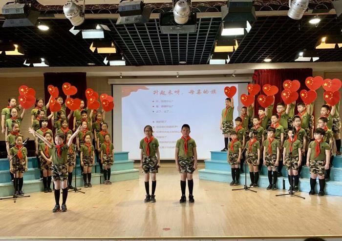 五(5)中队用一首《航天颂》,带领同学走近新中国的航天梦,展现了一代又一代航天人勇于探索,砥砺奋进的壮丽诗篇。三(6)中队展示了诗歌舞《我爱你,亲爱的祖国》,歌颂祖国五千年的文明,歌颂日益强盛的新时代,还展示了精彩的武术等中国功夫。四(1)中队齐诵《少年中国说》,“少年智则国智,少年富则国富;少年强则国强……”满怀豪情,层层推进,高亢响亮,激荡人心。四(5)中队朗诵的是辅导员王华珍老师的原创诗歌《升起来呀,母亲的旗!》,在清脆的童声中,大家仿佛听到了雄壮的国歌奏响;仿佛看到鲜艳的五星红旗冉冉升起。升起来的,是母亲的旗,更是少先队员们宝石般的决心。