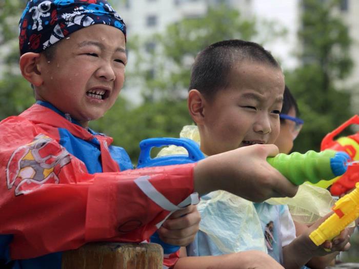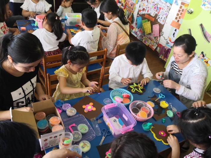 小班级部开展了《趣味拼盘 甜蜜童年》,家长和孩子们尽情发挥自己的创意,运用自己灵巧的双手,分工合作,拼出了一盘盘形态各异的精美的果盘,孩子们个个心里充满了成功的喜悦。中班级部开展了《带你一起嗨》射水大战,孩子们穿上雨衣带上防水镜拿起水枪奋力射水,射水大战在孩子们手中玩得风生水起,整个操场上沸腾了,欢笑声、雨声、射击声融为一体,这是孩子们最嗨的六一;大班孩子则玩起了《奇思妙想“绘”“六一”》,他们用自己的小手描绘出色彩斑斓的世界。一掬黏土,一双巧手,或点、或揉、或抹成就了一幅幅美轮美奂,创意无穷的作品。每一件作品中充满了童真与想象,处处闪现着智慧的光芒和创造的火花。