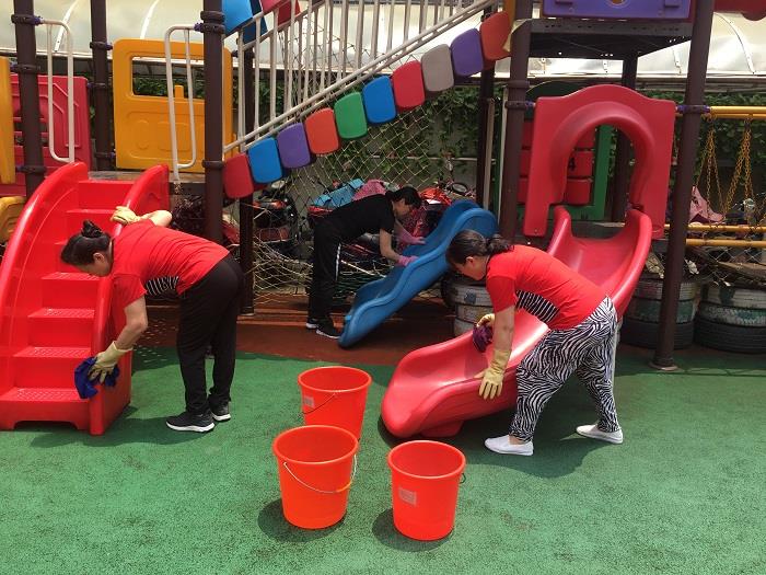 接着在保健医生的带领下,全体后勤人员行动起来,对园内食堂、教室、午睡室、大环境等进行了消毒杀菌工作。大家全力以赴,不留任何卫生死角。全面组织“防四害”,确保从源头上降低病菌的滋生和蔓延。