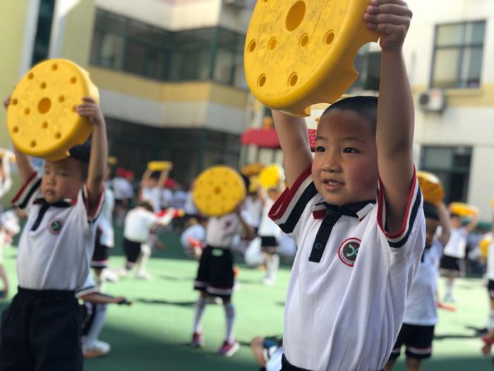 早操不仅是一项有益于幼儿健康发展的活动,也是幼儿园户外锻炼的主要途径之一,因此,本学期小荧星艺术幼儿园针对孩子的动作发展特点和年龄特点创编了有趣、有效的器械操。为进一步提高幼儿早操质量,展示近三个月来的成果,该园于6月3日举行了全园幼儿器械操展示评比活动。