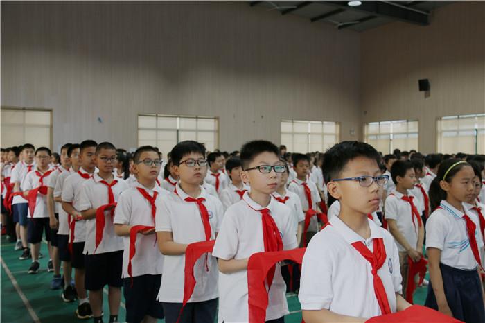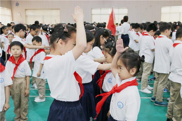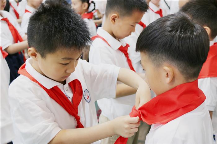 火红的队旗迎风招展,嘹亮的队歌振奋人心。5月31日上午,崇宁路小学一年级310名学生共同迎来了人生中庄严而神圣的时刻,戴上期盼已久的红领巾,光荣地加入中国少年先锋队!从此,他们有了一个共同而响亮的名字——少先队员!