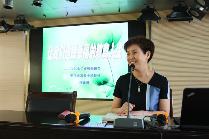为了深入开展无锡市总工会主办的“劳模精神、劳动精神、工匠精神”的宣讲活动,6月4日下午,东林小学报告厅内济济一堂,东林小学教育集团党委联合工会邀请江苏省劳动模范、特级教师、无锡市五爱小学校长许敏峰作题为《让我们选择幸福的教育人生》的专题讲座。
