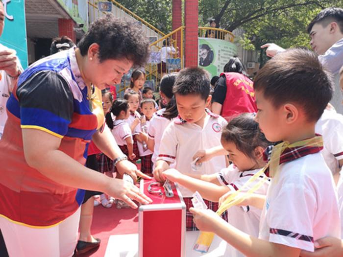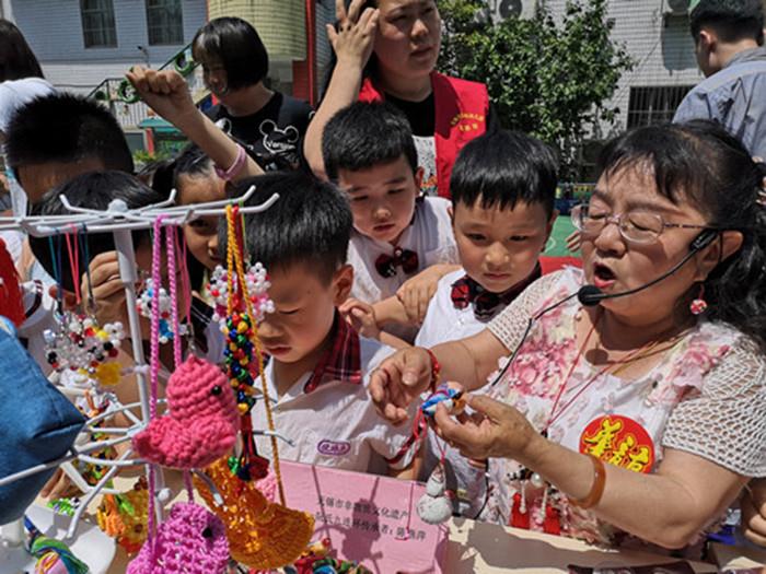 首先,宣讲团成员向孩子们介绍了非遗九连环和端午节传统习俗,并和他们亲密互动,孩子们反应热烈,踊跃上台展示。接着,义卖开始了,一个个“摊位”整齐干净,有玩具、幼儿图书、手工制作等,琳琅满目。孩子们纷纷选购心仪商品,亲身体验购物的乐趣,献出自己的一片爱心。活动现场热闹非凡,到处洋溢着欢声笑语。