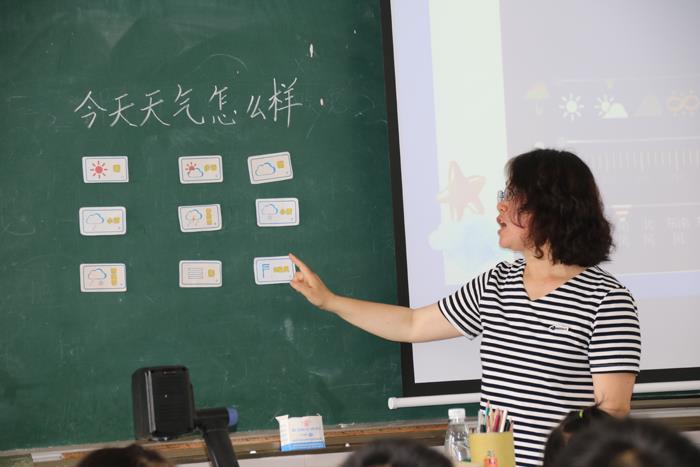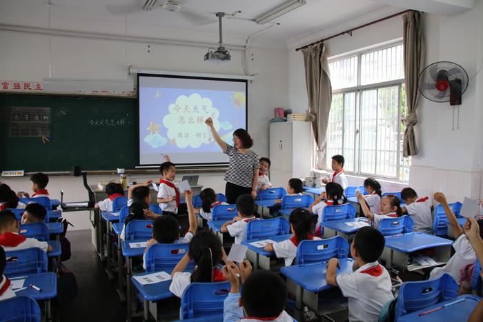 本次活动,在骨干教师章红燕执教的二年级上册《今天天气怎么样》一课中拉开帷幕。章老师以学生常见的交通信号灯、安全出口等图片引入,让学生明确标识符号的特点,接着导入主题《今天天气怎么样》,让学生化身“设计师”,积极自主地设计出多种天气符号,让学生在轻松愉悦的氛围中科学认识不同的天气符号,学会分析气象与预报中的气象要素。