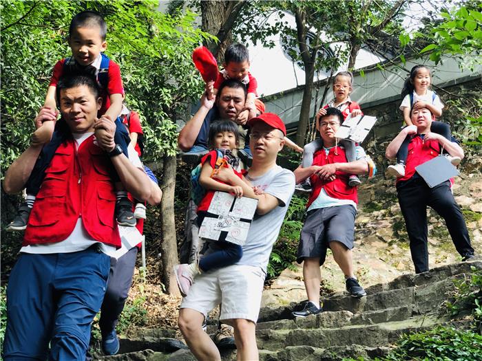 6月13日晚,开展了“high!友爱如水童年情”夜宿活动。在“篝火大联欢”活动中,六个大班的小朋友们大方进行表演,秀出各自风采。古筝演奏,热烈街舞,抒情弹唱,精彩节目依次表演;“乐器达人”,“舞林新秀”,“潜力歌手”,全能玩家轮番上场……晚会结束后,孩子们个个独立完成洗漱,小小人生中的第一次离家独自入眠拉开帷幕。伴着夜色渐深,大班老师们一遍遍巡视,为蹬掉被子的孩子盖上被子、关注平时体弱的孩子、安抚情绪小波动的孩子,直至每一个安然入睡……第二天一早,爸爸志愿者和老师一起带着孩子们走进锡惠公园,从映山湖旁沿石阶徒步登山。沿途,爸爸们拿好任务卡带着各小组孩子们分别寻找每一个打卡点,进行有趣的语音打卡。最后,登上山顶,在锡城标志龙光塔下迎接早晨的天空,对着上升朝阳大声喊出各自的“成长宣言”。