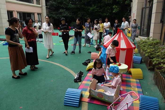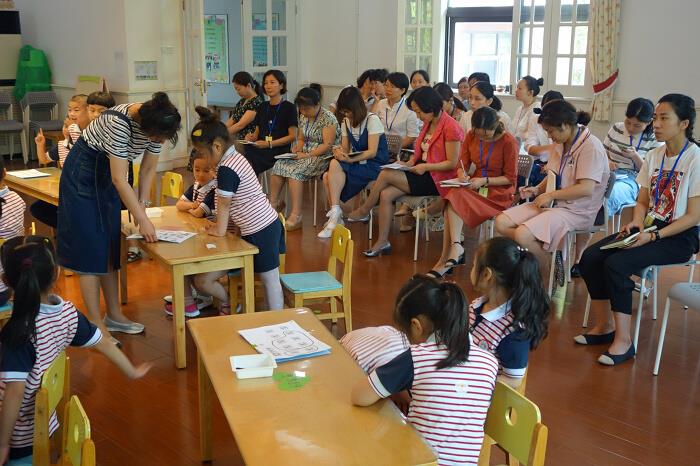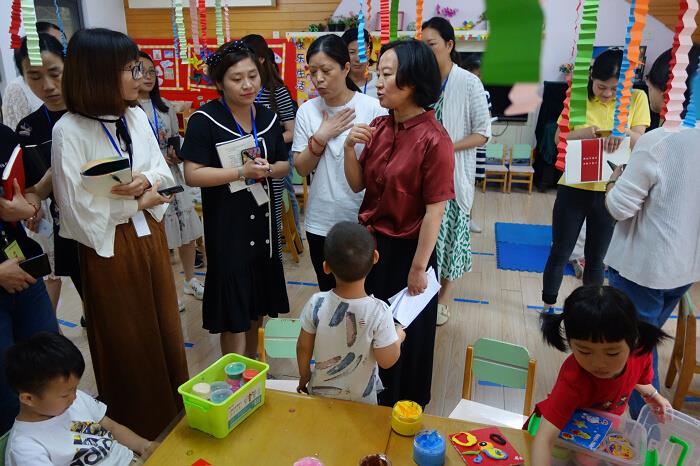 幼儿园每天安排学员走进教学现场。从“自由空间”游戏环境的灵动创设到“消费教育”活动的有机渗透,从集体教学活动的巧妙设计,到自主性区角活动的开放展示,还有科学有序的一日生活常规、细致周到的幼儿日常护理……都给跟岗的园长们留下了深刻的印象。