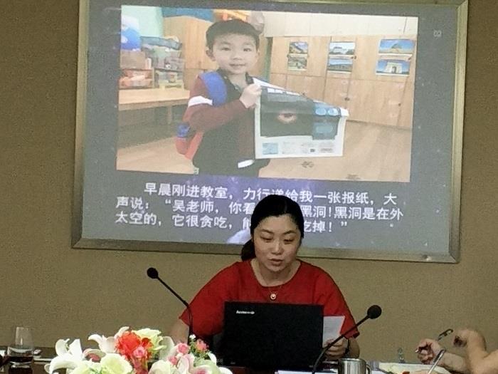 每位老师把观察到的游戏画面照片、拍摄好的游戏过程视频制作成PPT,并且毫不保留地分享以及自己对幼儿游戏中的行为观察与思考。老师们仔细观察照片、视频,用心倾听参赛教师对幼儿游戏行为的分析,主动思考他们的思路是否正确、他们的调整是否合理。《纸杯大变身》、《黑洞,你好!》、《小小动物园 建造大乐趣》、《葡萄排队》等观察记录的分享令大家豁然开朗:看似平常的游戏行为中隐藏着孩子的大秘密,老师要善于发现问题,才能探究如何解决问题;孩子无意识的发现“小树叶”,能引发全班孩子一系列的探索行为;新闻也能为孩子们的游戏注入新生力量……每位老师都成功地传递了观察在幼儿游戏中的重要作用,老师们对游戏中幼儿行为的观察非常重视,这对“课程游戏化”的扎实推进发挥了很大的助推作用。