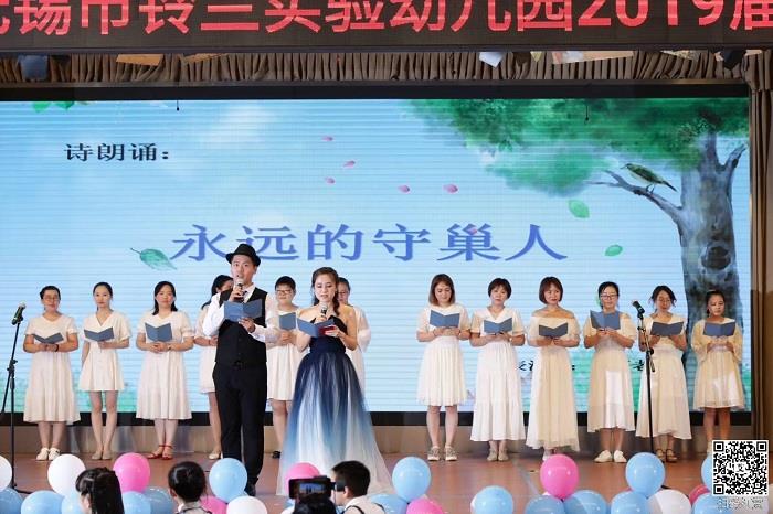 随着欢快音乐的响起,毕业典礼拉开了帷幕。屏幕上播放着孩子们从小班入园开始的点点滴滴:情绪波动引起的哭闹、挑食偏食造成的发脾气、获奖后的灿烂笑容、挑战胜利的得意……三年的幼儿园生活充盈着整个舞台。开场第一个节目是大班的舞蹈《一年级》,孩子们的举手投足道出了他们对小学的向往、对美好未来的憧憬。紧接着,家长代表的致词,讲出了所有大班家长的心声,表达了他们三年来对幼儿园、对老师的感激之情,并对孩子们的未来表示了深切的祝愿!周迎新园长为每个班级颁发毕业证书、为优秀家长颁奖,让他们的幼儿园生活留下一个见证。孩子们用精彩纷呈的表演展现着他们的成长过程:古诗新唱《春晓》、舞蹈《兰花草》、《爱心无限大》、《勇敢的小兵》、情景剧《梳小辫》、歌舞《老师,谢谢您》……每一种声音、每一个舞蹈都传递着对老师真诚的谢意和对幼儿园三年生活的无限眷念。那一颗颗纯真的童心感动了在场的家长,使家长们充分感受到孩子飞跃的进步,他们也忍不住上场表达了自己的幸福感,爸爸和女儿同台表演了《爱的华尔兹》、妈妈们奉献了舞蹈《时间都去哪儿了》。大班的老师们为了欢送自己班的孩子,表达自己对幼教事业的坚守之心,呈现了诗朗诵《永远的守巢人》、师幼对唱《爱上幼儿园》。整台节目博得家长们热烈的掌声和欢呼声。最后,毕业典礼在一曲深情的《毕业歌》中画上了圆满的句号。