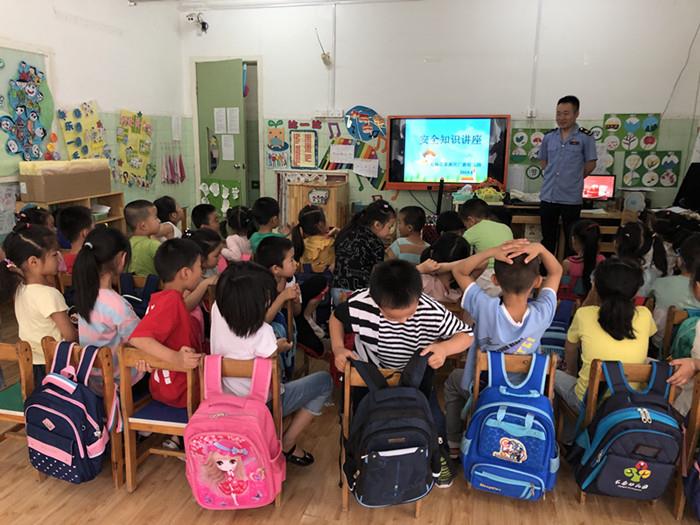 在活动中,卢局通过PPT的演示对孩子们开展了暑期安全讲座,如:外出时如何防走失、防拐的正确方法,在家中如何注意水、电、燃气的安全,最后,针对幼儿外出乘坐电梯开展了乘坐电梯的安全讲座,在活动中运用了与孩子们互问互答,互相探讨、互相演示等方式,让孩子们在不知不觉中掌握防走失、乘坐电梯、饮食方面等安全知识,从而提高孩子们的安全防范意识。