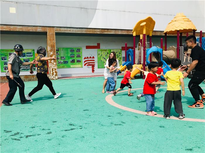 为了更有效防范校园内发生突发伤害事件,切实保障广大师生人身安全,及时处置侵害师生安全的恶性事件,6月28日,通德桥实验幼儿园开展了防暴应急演练活动。