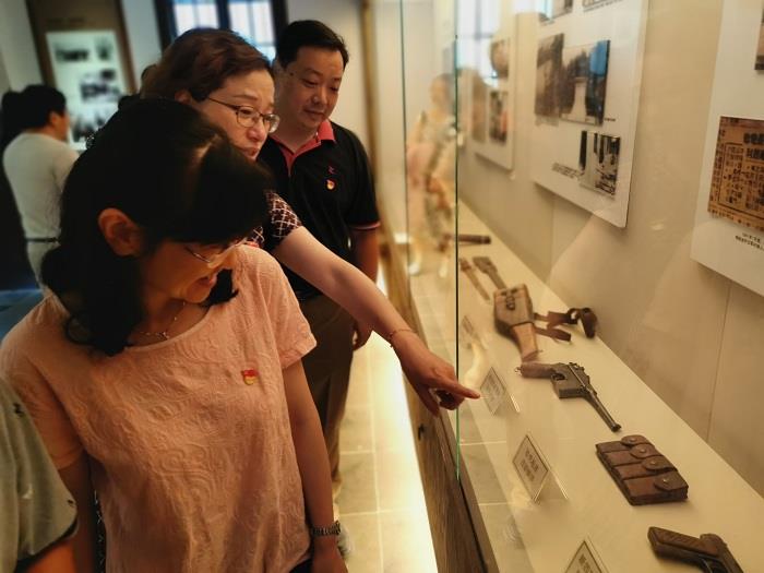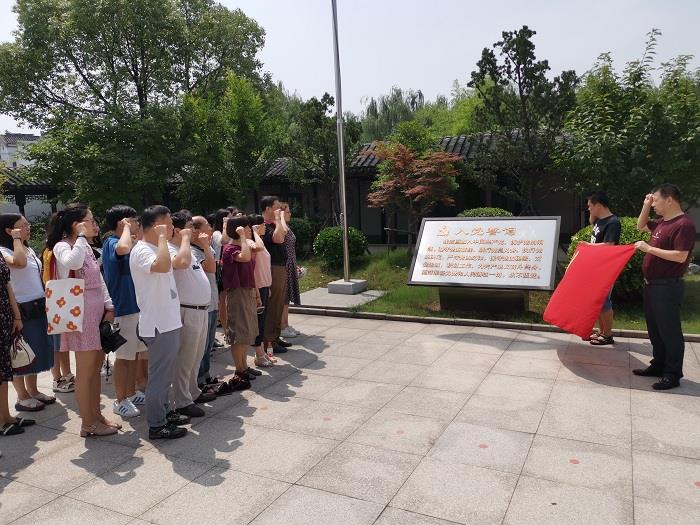 接着,全体党员参观了位于锡山区锡北镇寨门诸巷的新四军六师师部旧址纪念馆。在纪念馆工作人员的带领下,同志们参观了新四军的军用装备和生活用品,观看了影片《锡北1941》。大量的图文资料和实物展品,展示了新四军、“新江抗”在无锡的斗争历史。全体人员还在党支部书记的带领下,面对党旗进行庄严宣誓,重温入党誓词。