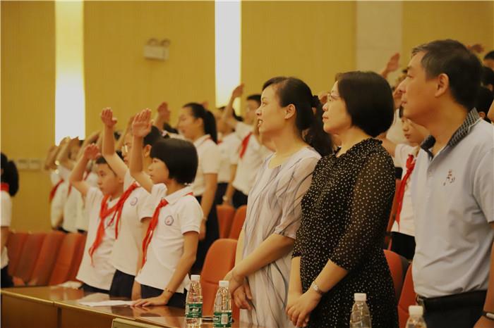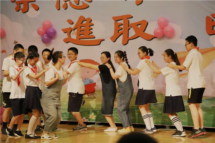 小学六年,是快乐的六年;小学六年,是有趣的六年。每个班级中都有才华出众的你,每个集体中都有技压群芳的我,吹、拉、弹、敲、说、唱、逗、演,样样精彩。师生互动游戏《爱的抱抱》把气氛再次推向高潮,师生之间最真挚的感情化为最深情的拥抱。“校园里洒满金色的阳光,绿树环绕,鲜花怒放。崇宁路小学,幸福的乐园,是我们茁壮成长的地方……”熟悉的旋律响起,全场起立合唱校歌,六年的小学生活在歌声中定格为永恒的记忆。